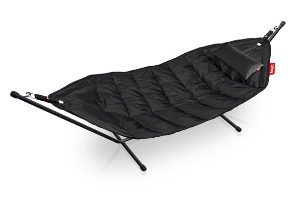Don't hammock alone! Our oversized hammock can hold up to 2 people or 330 lbs., and what's more, you don't even need a tree to hang it in. Our unique design and solid frame means you can pop it up anywhere and enjoy - on your own, with a friend, or your kids… Headdemock's for sharing. Just dive in this Fatboy hammock, lie back and relax.
