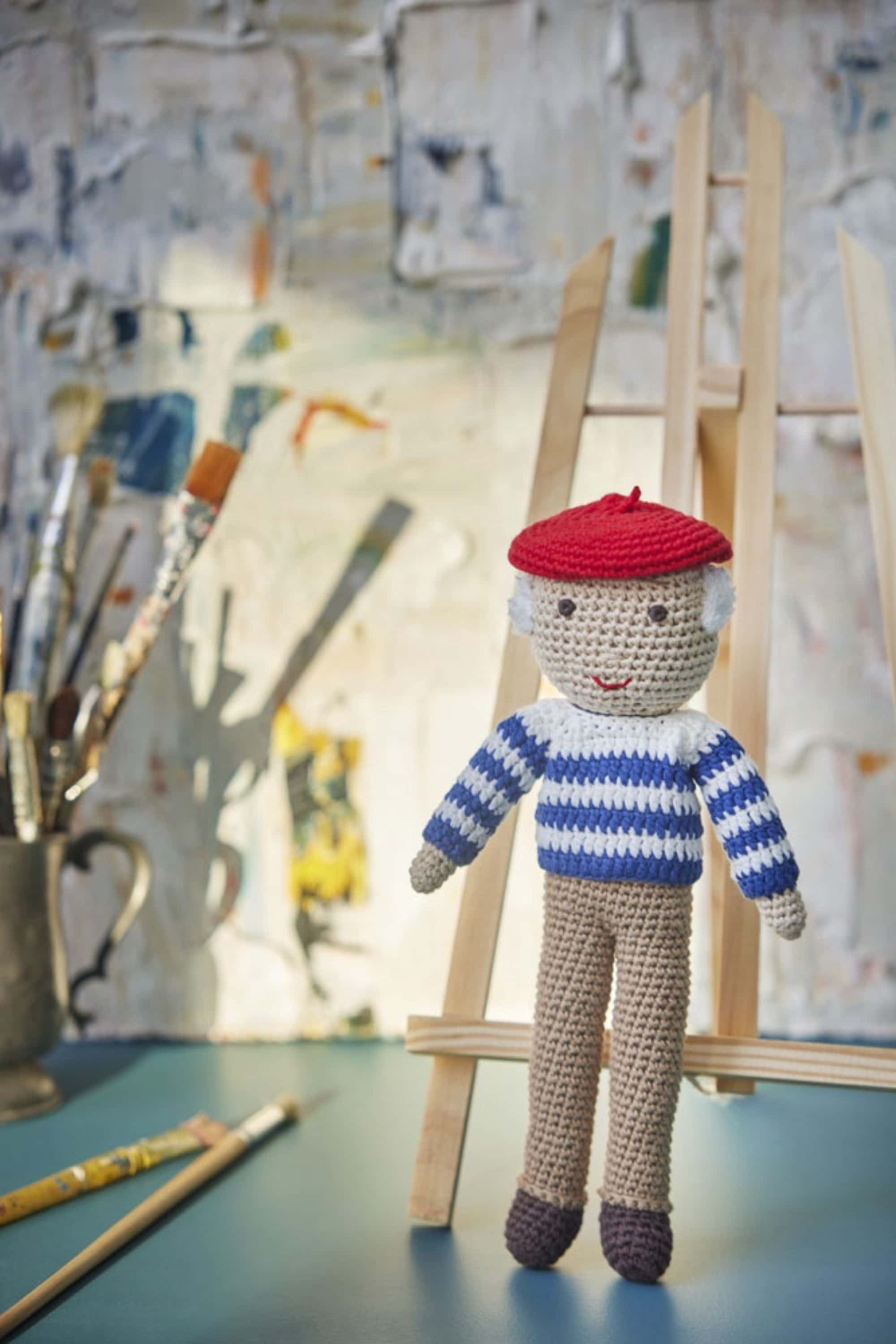 For the art lovers: you can’t start too early stimulating art. Vincent is handmade and part of our Artist collection.