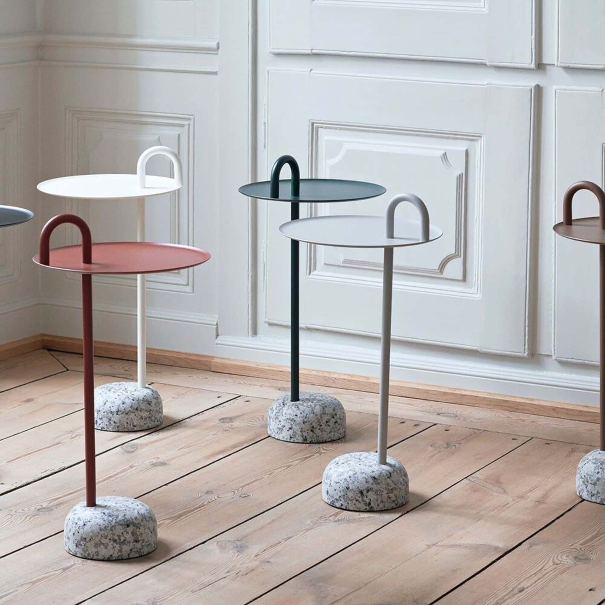 Shane Schneck’s Bowler Table is a compact side table that is ideal for small spaces. The single tube that extends upwards creates a defined profile, which doubles as a functional handle too. The stem, handle and tray are made in powder coated steel, with a solid granite base that provides stability, yet it is still lightweight enough to move around. Bowler comes flat packed and is easy to assemble, making it suitable for all kinds of domestic and corporate environments.
