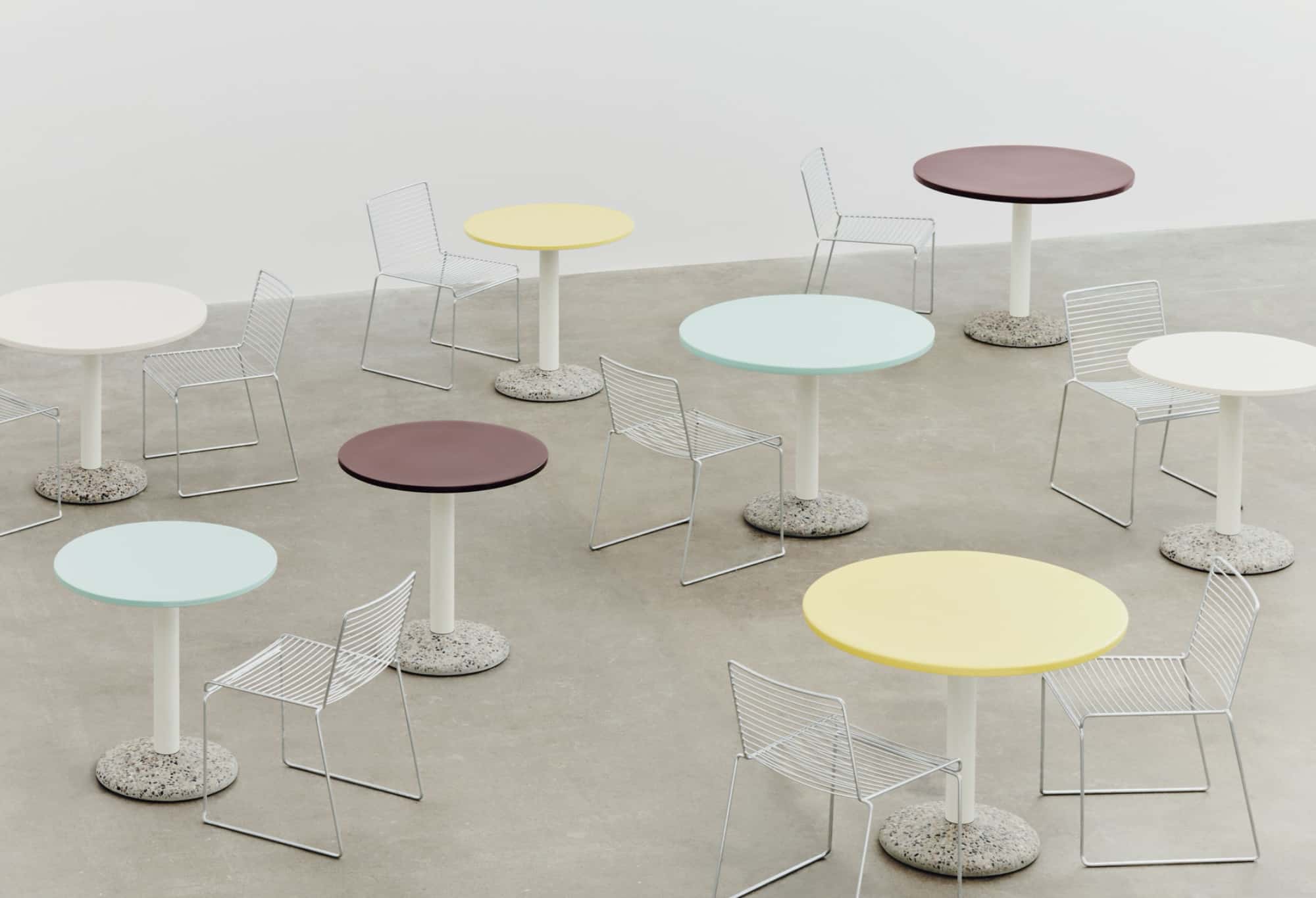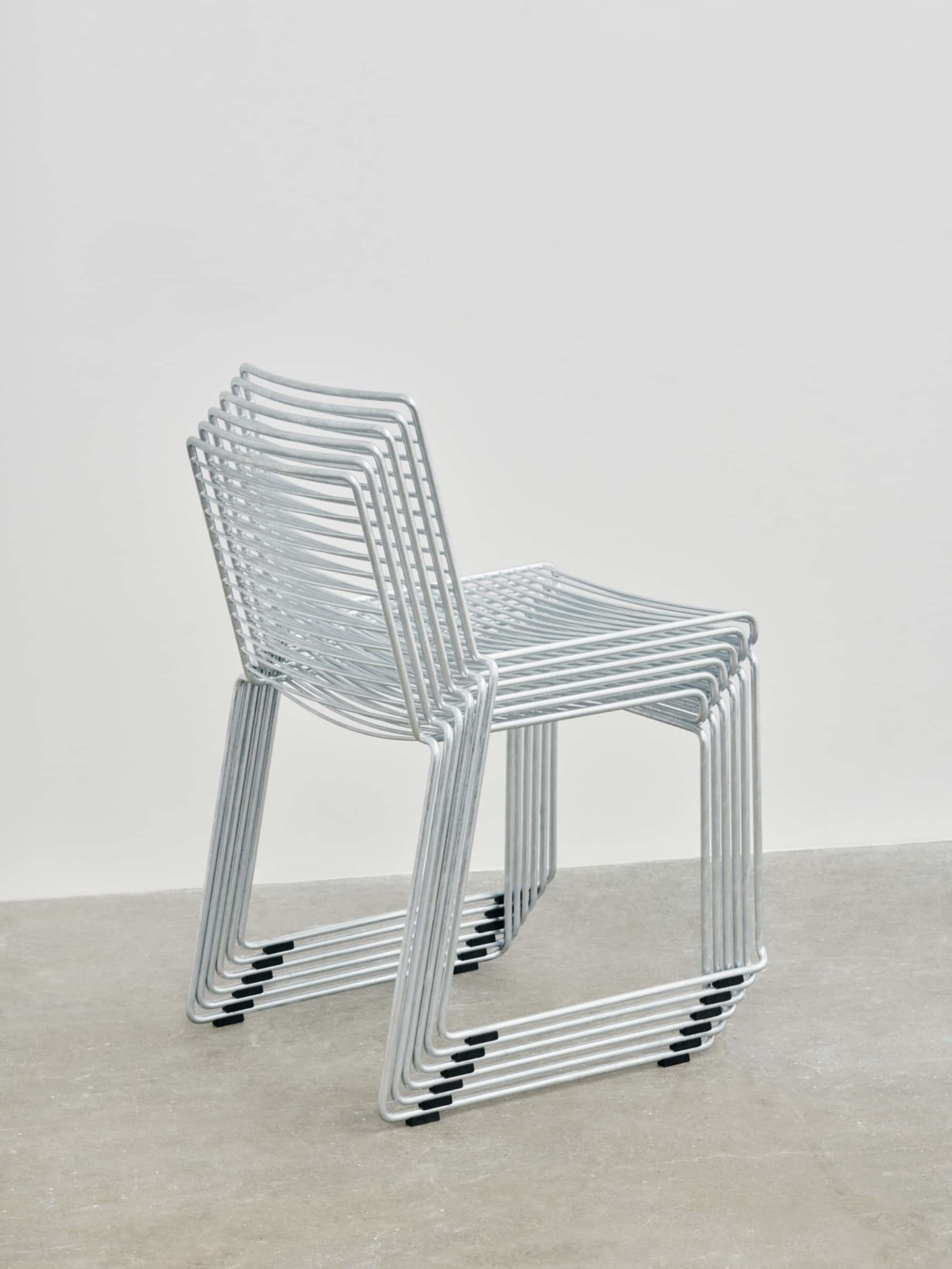 Hee Dining chair is a metal wire in galvanized solid steel which makes it rust-resistant and perfect for outdoor use. The chairs can be linked together in rows for conference use, and the new colour scheme keeps the Hee chairs updated.