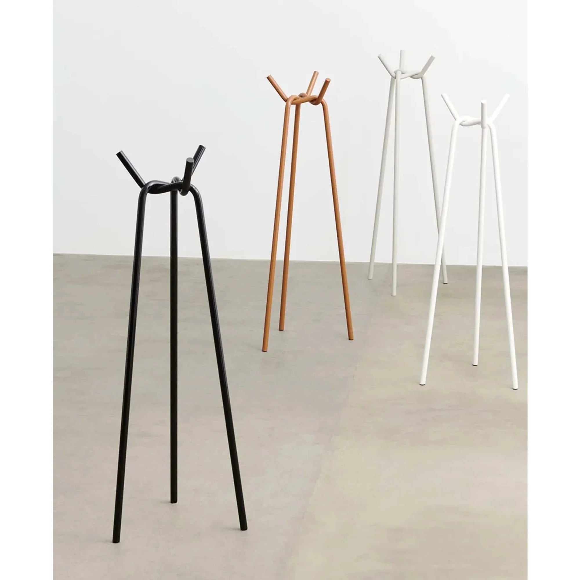 Designed by Japanese Jin Kuramoto, Knit is a simple and iconic coat rack with a distinctive sculptural design. Comprising three powder lacquered steel pipes that are interconnected in a three-dimensional way, the pipes are securely ‘knitted’ together to support each other and create the strength of the body. Inspired by the tactile experience of touching materials and the experimental processes of bending and knitting ropes and metal rods, Knit was developed as an extension of HAY’s wardrobe and garment hanging options in a flat-packed design that is easy to assemble. Featuring a high gloss finish that creates a lustrous effect, Knit can be used to add functionality and visual interest to hallways, bedrooms and other private or public areas.