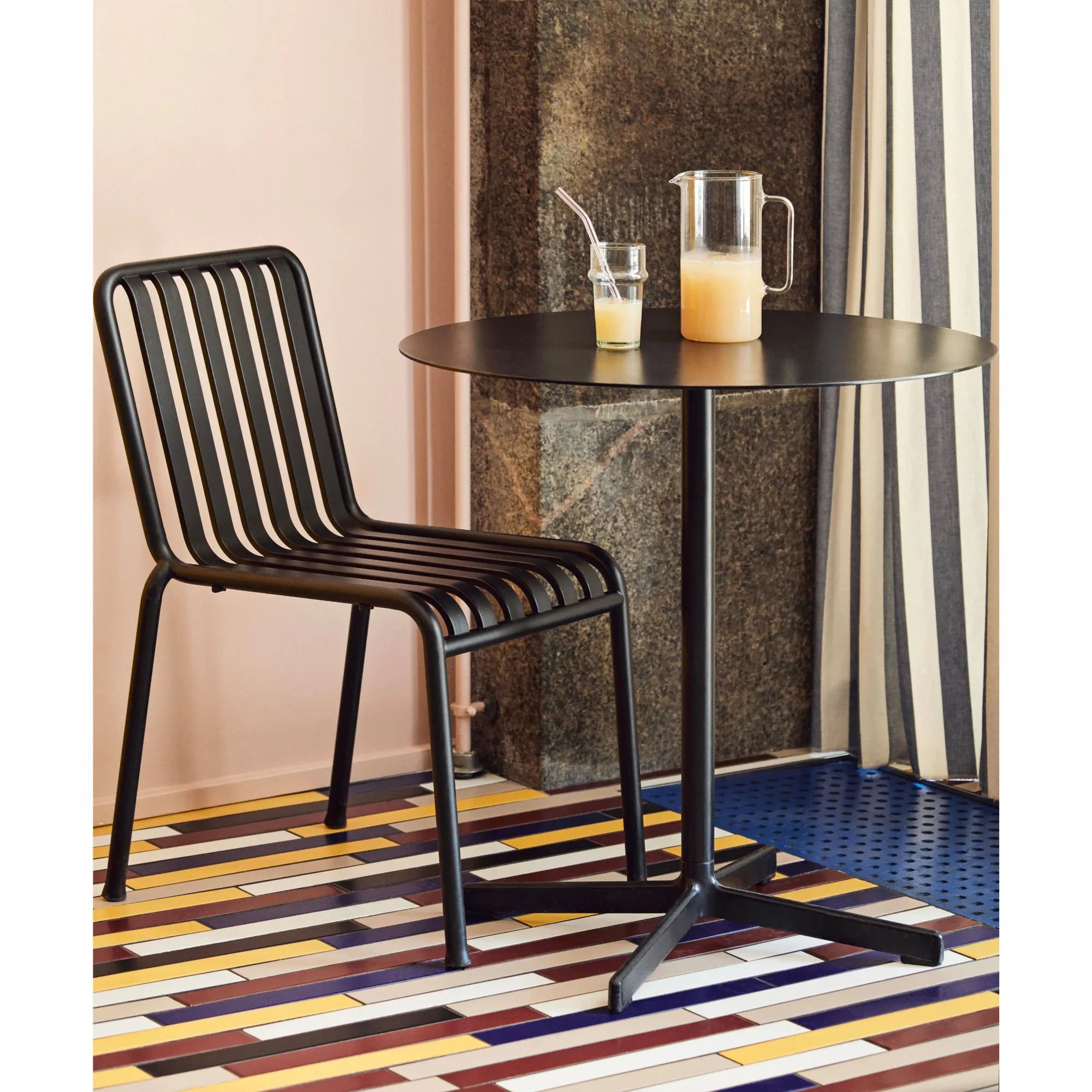 Designed by French brothers Ronan and Erwan Bouroullec, the hot-dip galvanised range was developed to supplement the existing Palissade collection of outdoor furniture. United by a common principle of symmetrical geometry, the collection is engineered to reproduce the same visual simplicity and core strength throughout. Designed in colour and form to integrate effortlessly into a natural landscape or urban setting, Palissade is intended to be used over a longer period of time and become more beautiful over the years. The furniture’s longevity is greatly extended by the hot dip galvanisation process, where the steel frames are dipped in molten zinc, forming a resilient coating over the entire steel surface, protecting against corrosion and offering a maintenance-free finish. The collection is particularly suited to outdoor cafés and restaurants, public gardens or urban spaces.