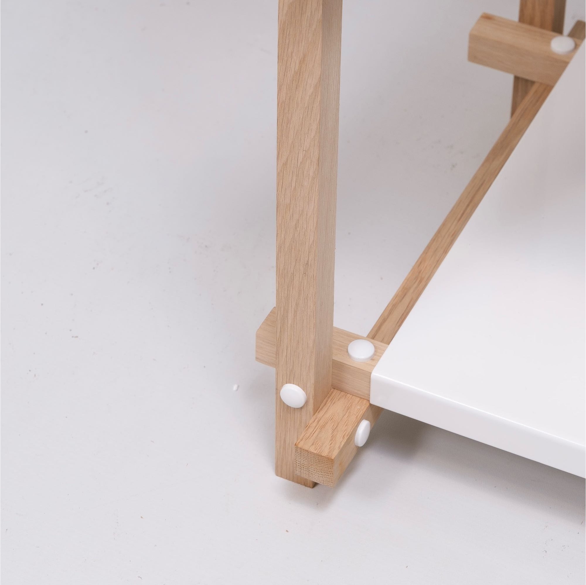 Woody was originally designed for inventory use, but after much demand this ladder-inspired shelving system was soon put into commercial production. Woody’s beauty lies in its open simplicity and industrial expression that leaves construction parts and joint details exposed. Woody is available in several different sizes and can be used as a free-standing shelving system, against a wall or as a room divider.