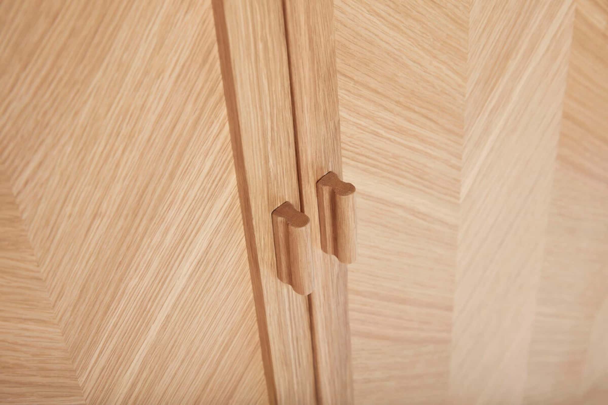 Introducing the Herringbone Wardrobe. Crafted from FSC certified Oak veneer and Oak wood, this wardrobe is the perfect addition to any bedroom. Highly durable and stylish, its herringbone pattern makes it a unique and eye-catching piece of furniture. It comes with plenty of storage space for all your clothing needs and is easy to assemble. Add a touch of sophistication to your home with this beautiful wardrobe.