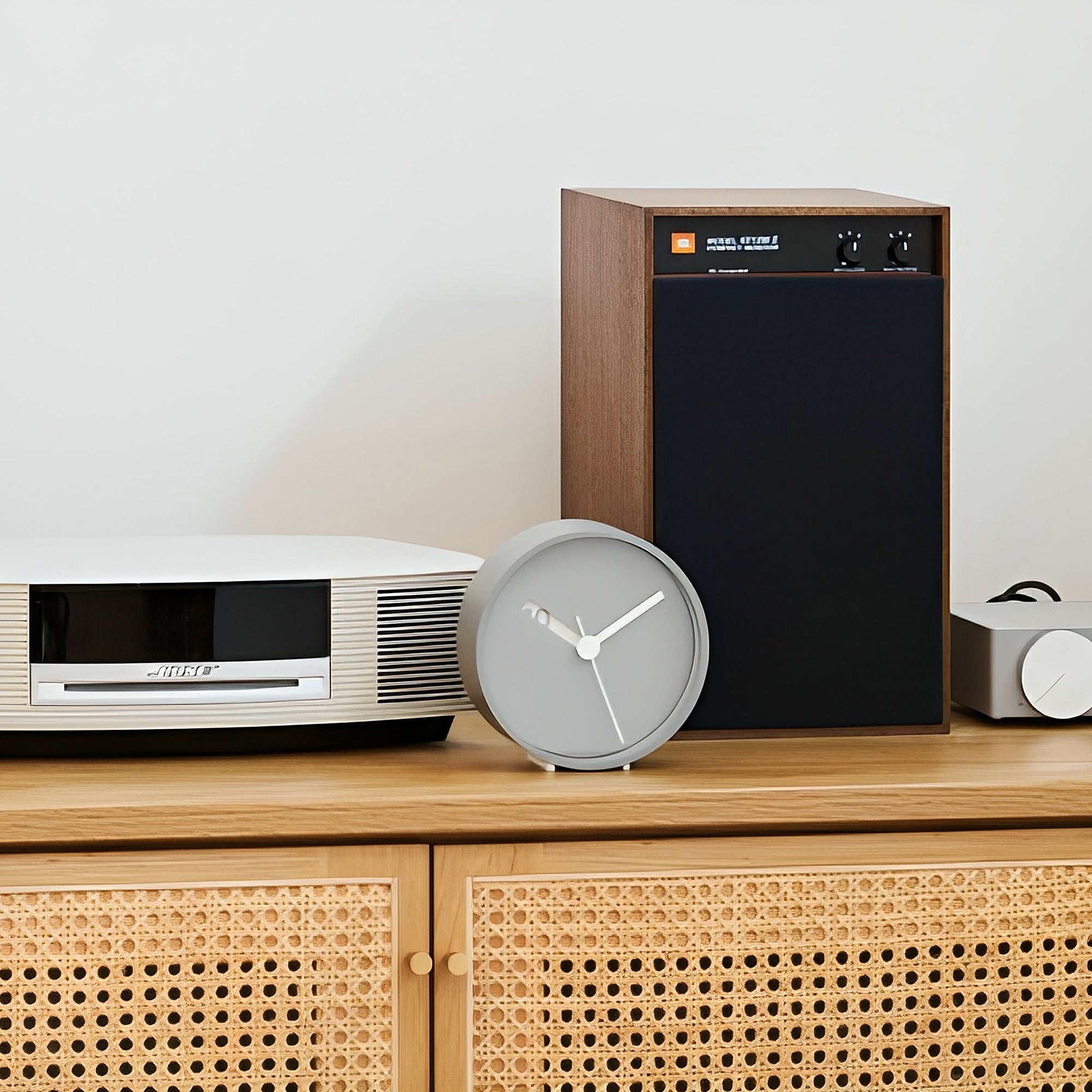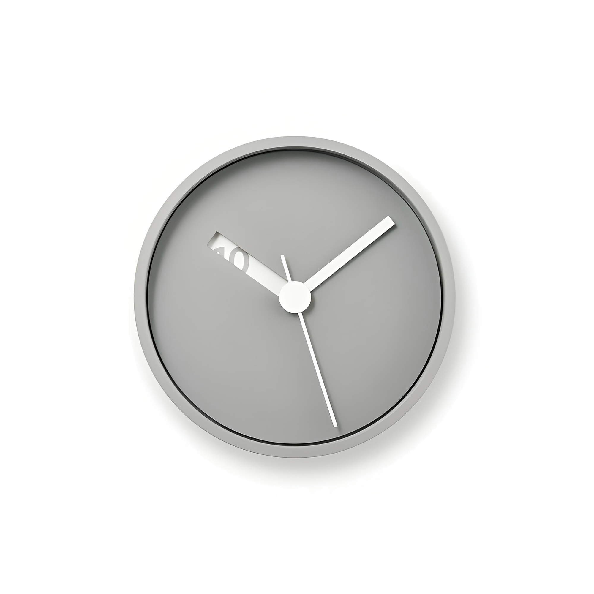 The Extranormal Wall Clock (Grey) by Ross McBride brings a soft, neutral tone to the iconic Extranormal design. With a smooth grey face and a matching grey case, this version pairs minimalist elegance with subtle warmth, making it versatile for a variety of interiors. The innovative square-cut hour hand reveals hidden numbers through a layered dial, blending functional simplicity with a unique detail.