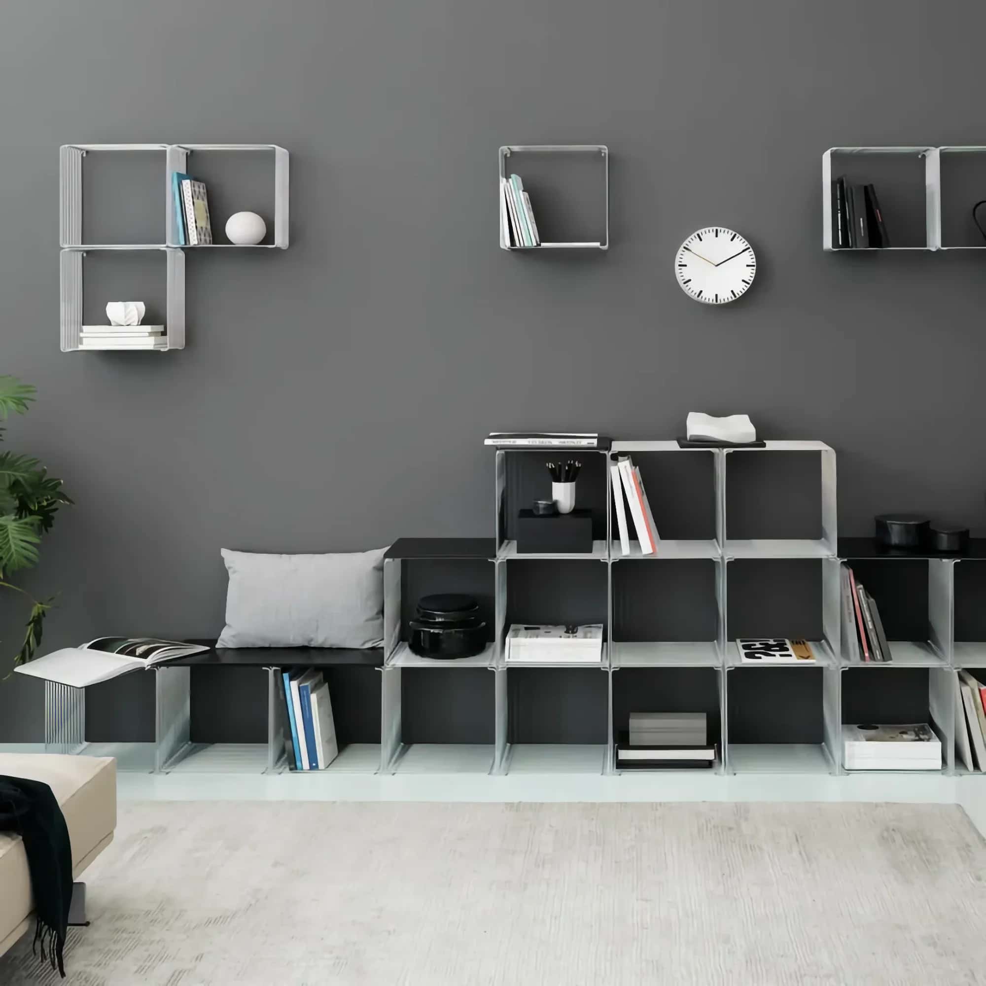 Panton Wire by Verner Panton is raw yet elegant, light yet industrial in its design. The Panton Wire units can be used individually or in combination - on the floor, hanging on the wall or as room dividers. Panton Wire is made of 5mm wire and is supplied with 4 clips for combinging modules and 2 suspensions rails for wall mounting. Floor: max load 40kg; wall: max load 10kg (depending on wall/fixing).Wall brackets included.