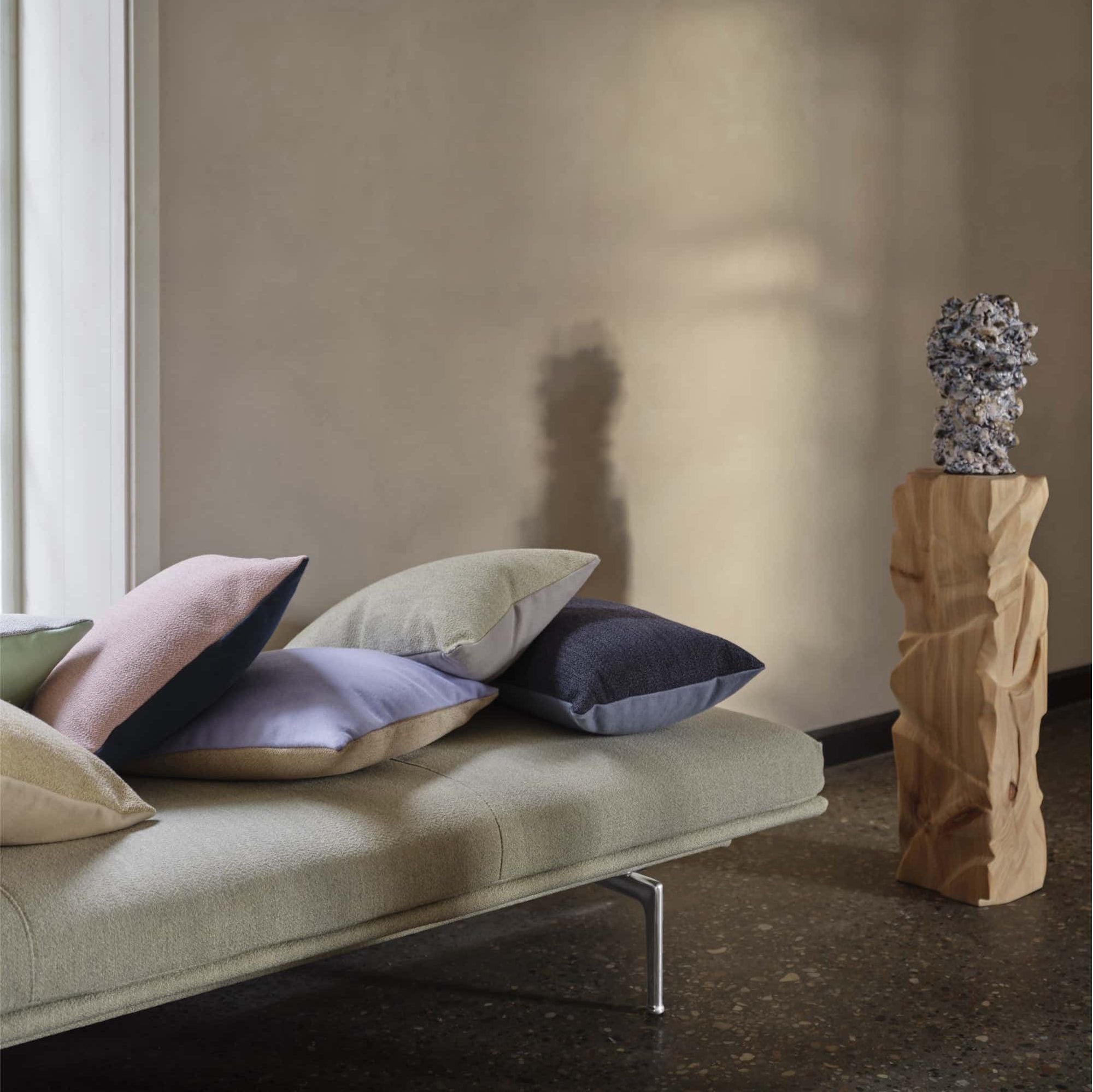 Mingle Cushion is a piece where contrasts harmonize in a compelling mingling of color and materials. Use it front or back, depending on which expression you would like to play with — textured or smooth. Mingle Cushion is available in two sizes and 8 color variants ideal to mix and match.