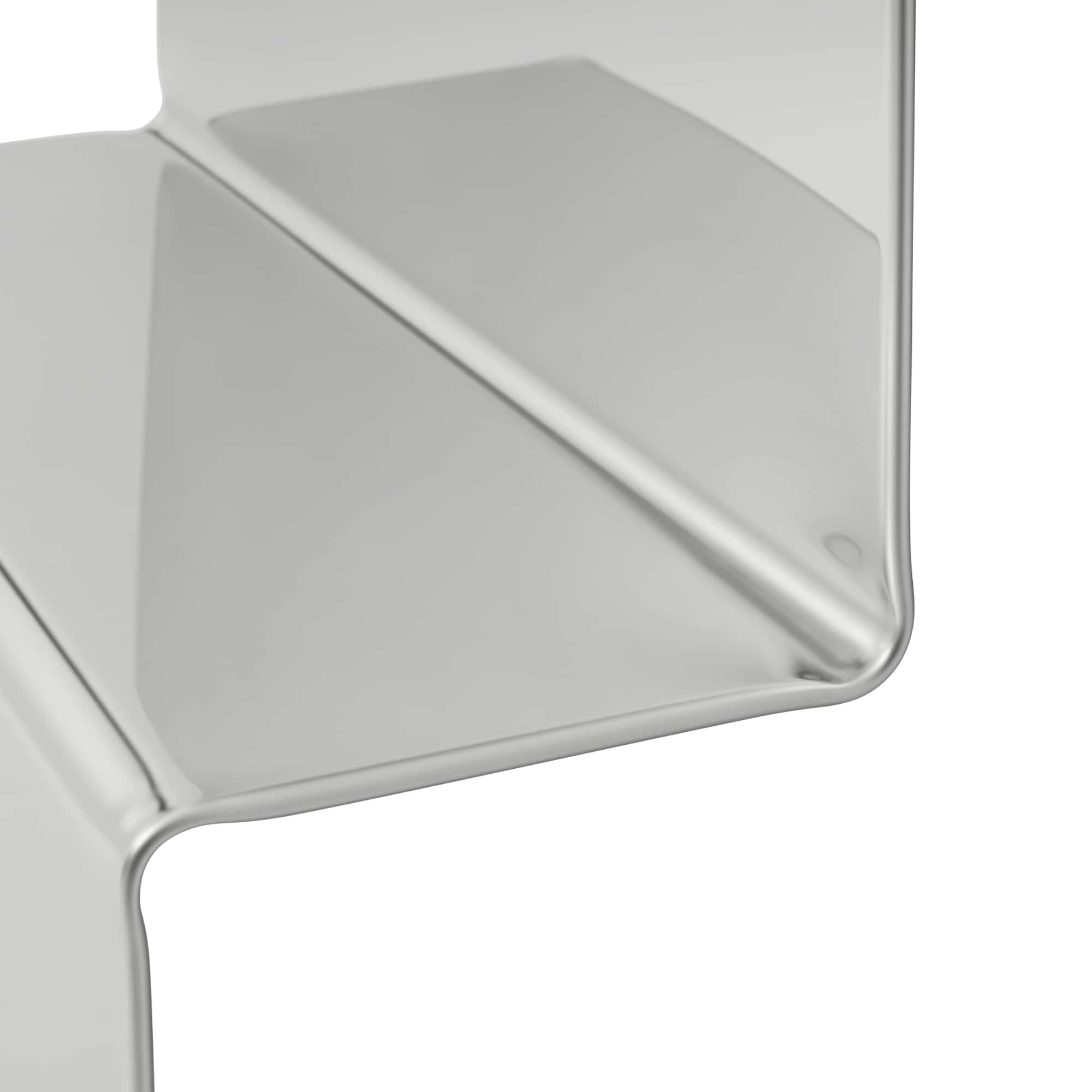 The Pleat Mirror reimagines a full-length mirror as a sculptural, architectural element. Crafted from mirror-polished stainless steel, it reflects its surroundings with a bold, contemporary expression, while its folded form adds depth and visual interest. The reflective surface shifts with the room and light, behaving almost like a living artwork. Cut from a single steel sheet to precise proportions, its scale echoes a doorway, lending it presence in both residential and commercial spaces. Combining industrial materiality with soft, fluid curves, Pleat feels minimal yet commanding.