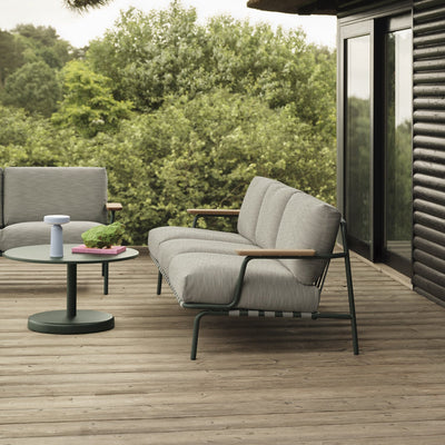 The Muuto Settle 3-Seater Sofa is a fusion of elegance and durability tailored for outdoor spaces. Crafted with an attention to detail, the airy steel frame is primed, galvanized, and powder-coated, ensuring it remains free from corrosion and maintains its aesthetic appeal over time. The intricate visible belts and the robust structure showcase a design that's both functional and visually engaging.