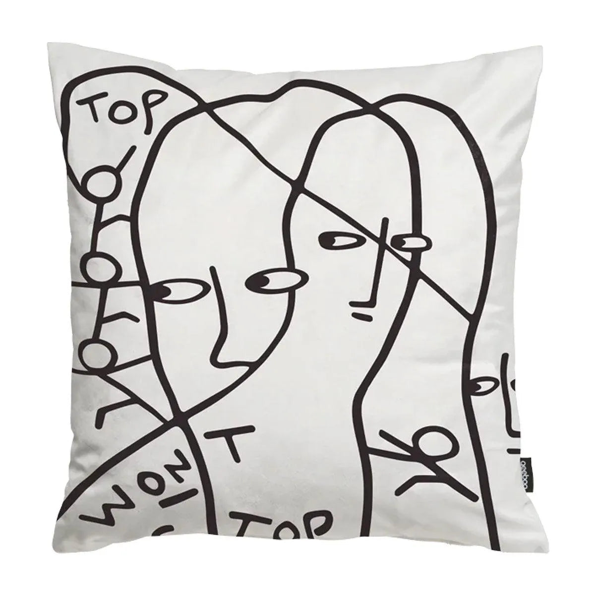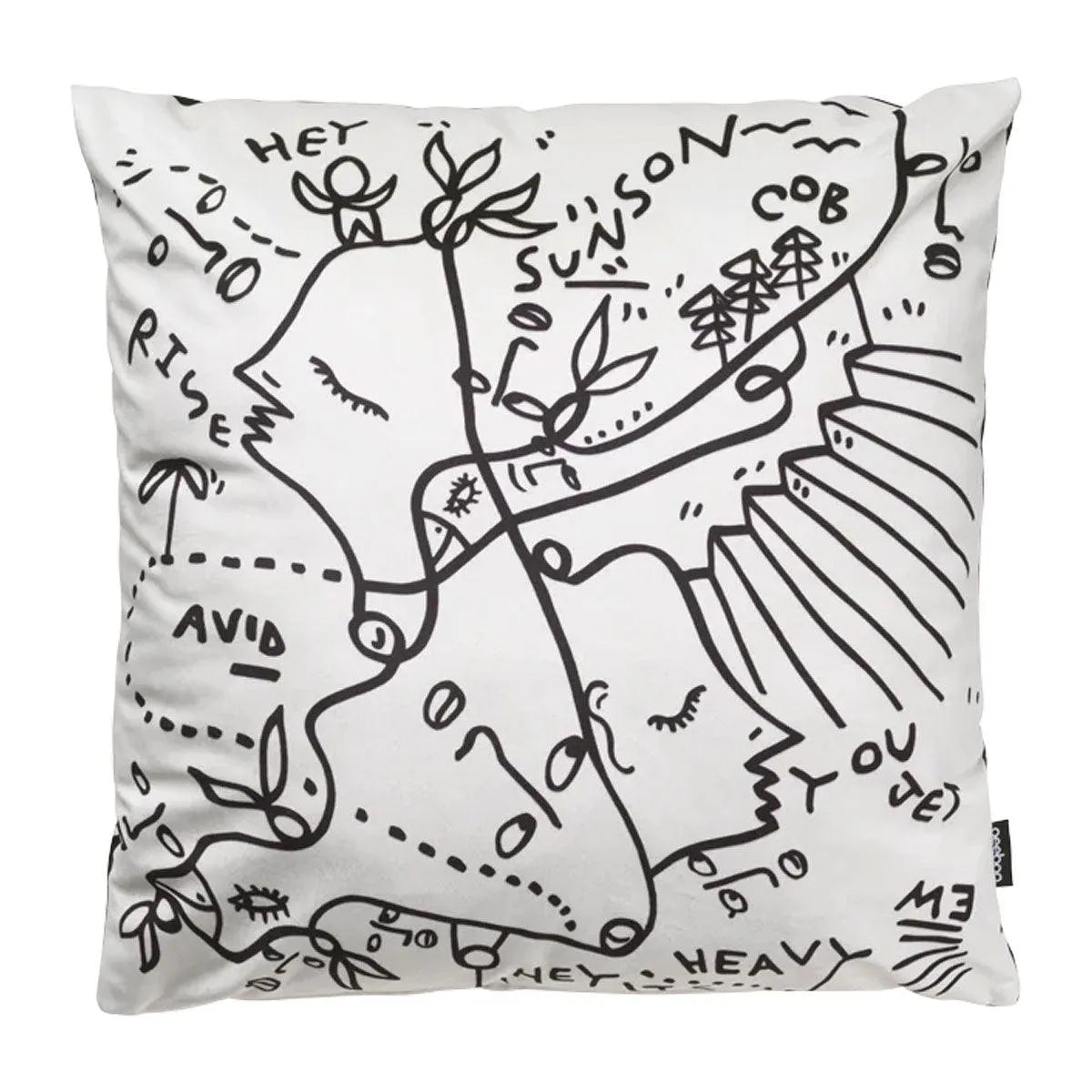 The linescapes collection by Shantell Martin includes a series of poufs, cushions and carpets all characterized by lines, texts and stylized drawings in black and white, a recurring language that Shantell uses in her artwork.