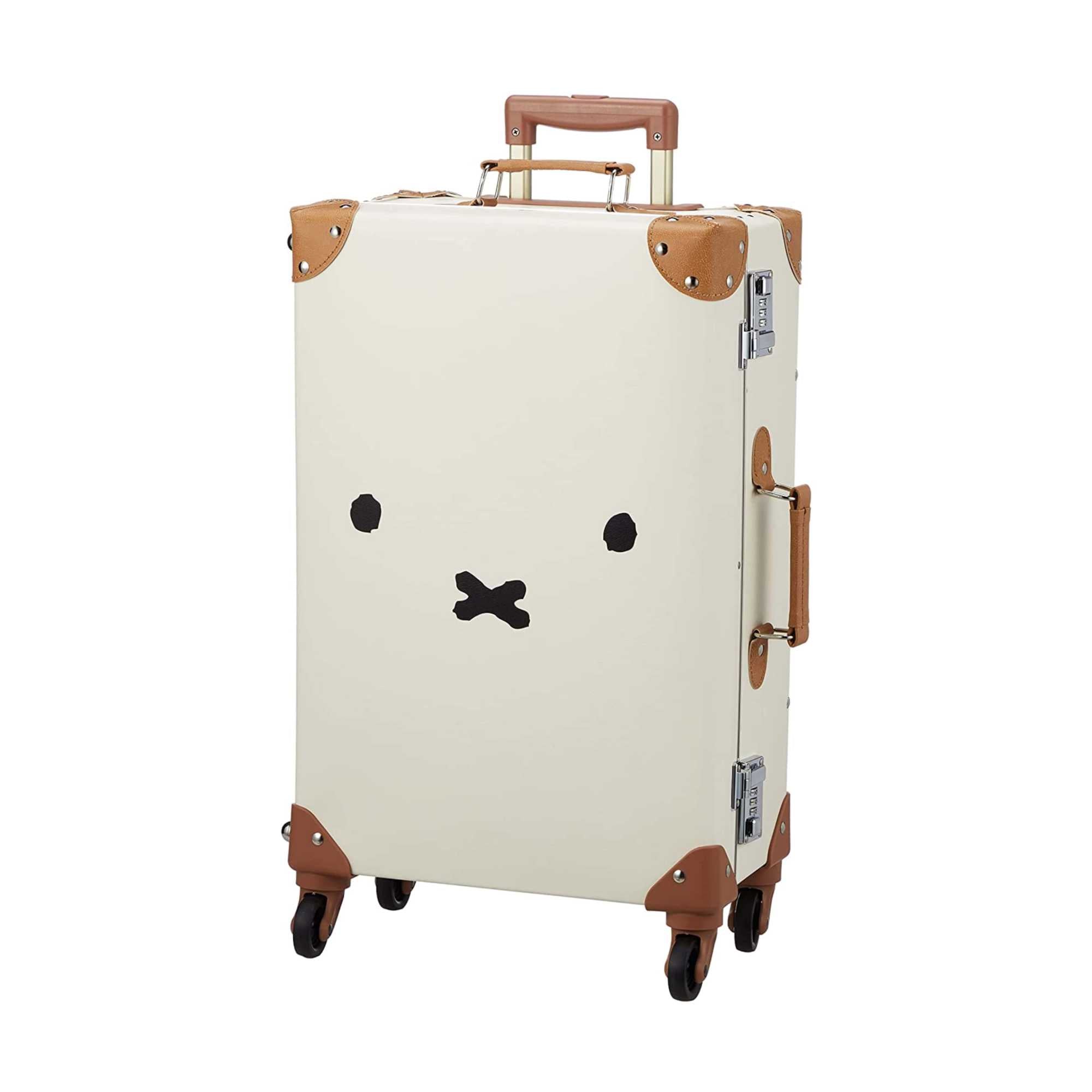 Miffy's cute face trunk carrier.Made of synthetic leather for a classic and fashionable look.The interior fabric is printed with a cute Miffy floral pattern.The interior zipper top is also Miffy shaped with attention to detail.
