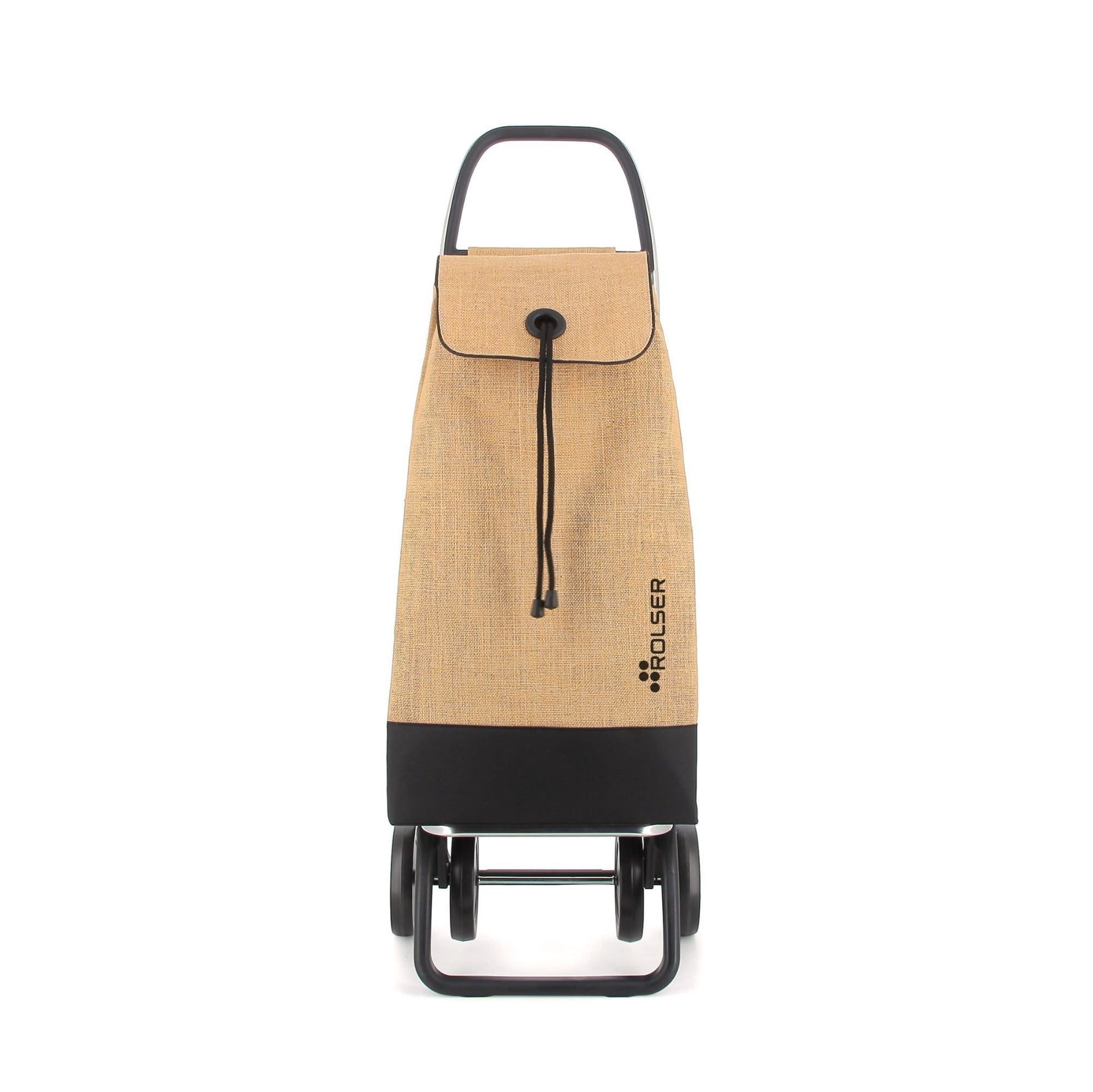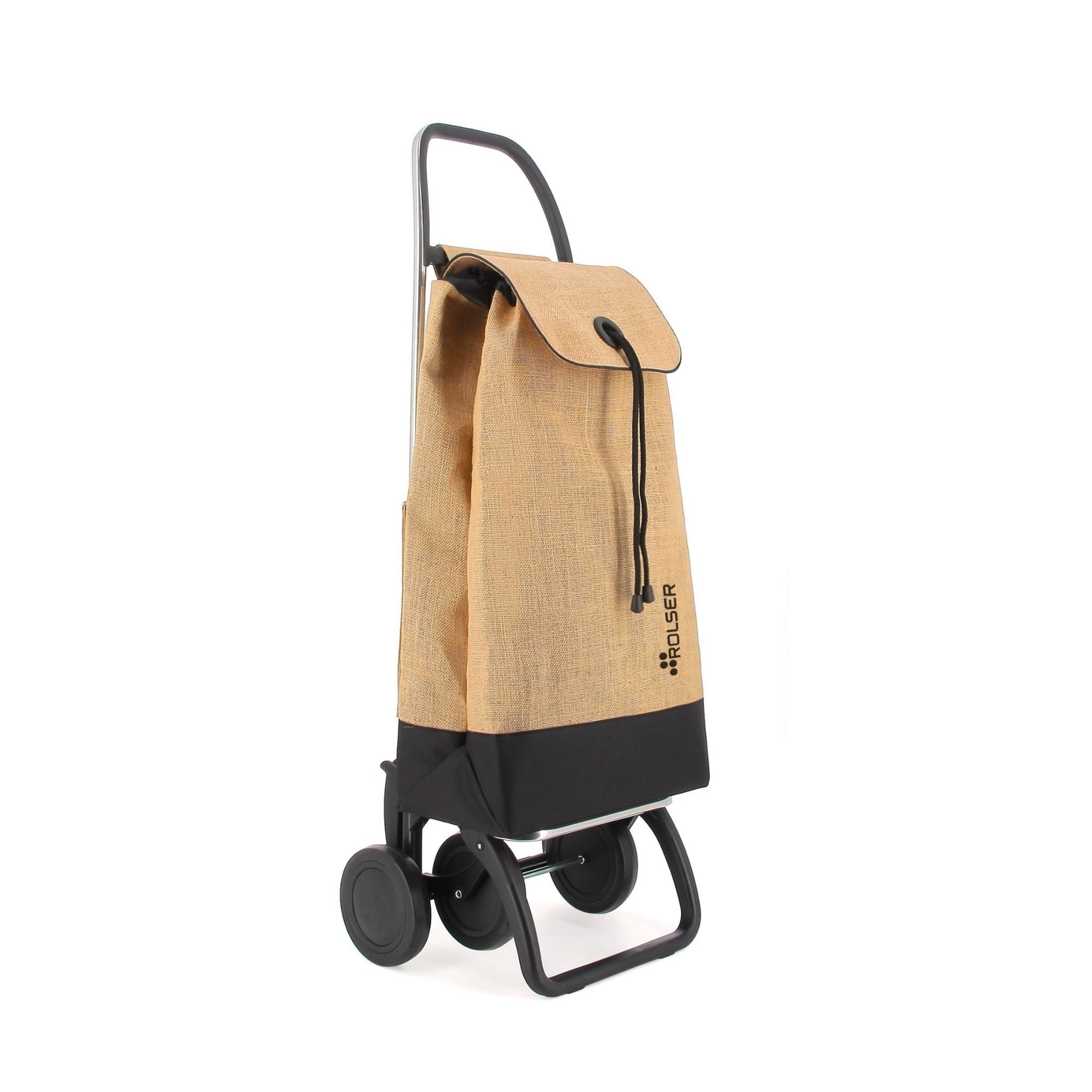Designed to combine style and practicality. I-Max Yute is made of durable jute combined with black on the bottom for a stylish touch. A unique design with a modern and elegant touch. A sustainable and refined option for your small load transfers! Rolser shopping trolley in aluminium with 2/4 wheels, to avoid unnecessary loads. In two-wheel position to pull along when empty, and in four-wheel position to push along when full. Chassis with front support and folding base to store in small spaces. It will help you with any type of transfer of small loads. Perfect for carrying items to the laundrette, to the beach, shopping, fishing, to the gym, etc… The I-MAX YUTE BI bag comes in backpack format, with double inside pocket, drawstring closure, eyelet on the flap and easily adapts to the chassis with