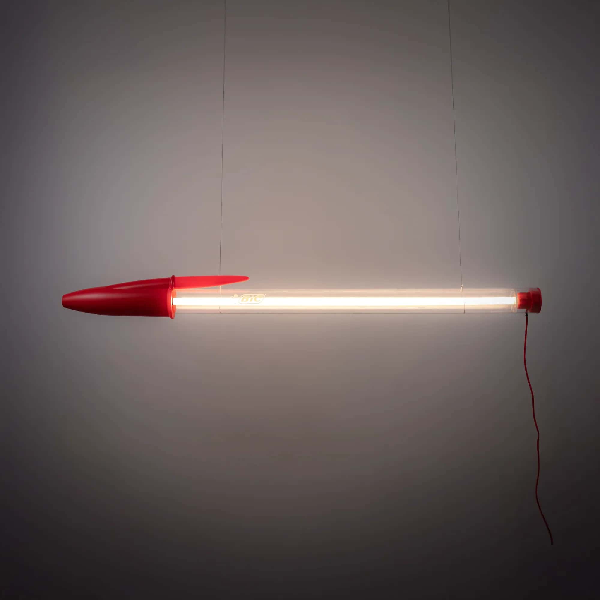 BIC® Lamp reinterprets the legendary BIC® Cristal at a 12:1 scale in its three most recognizable versions-classic black, blue, and red-as a floor lamp, pendant light, or wall sconce. Made with materials chosen to evoke the original with the utmost precision, while guaranteeing optimal lighting performance, this lamp celebrates one of the most widespread and beloved objects in the world.