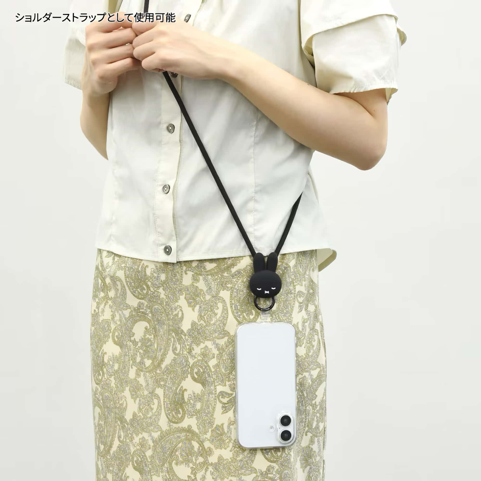 Combine it with the included shoulder strap to use it as a smartphone shoulder strap. The shoulder strap extends up to approximately 75cm (when in use) and includes an adjustable strap for customization. A silicone mascot is included.