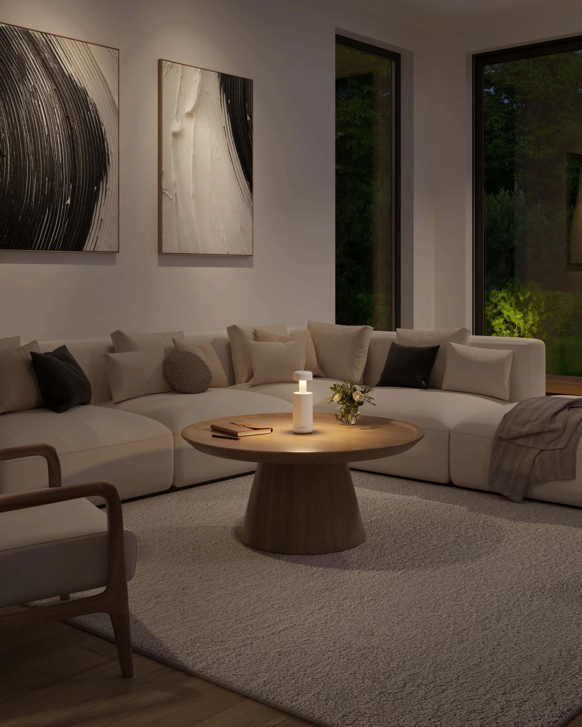 The lamp impresses with its special mode of operation, which goes far beyond a simple light source. The switching-on process is at the centre of the experience: by pressing lightly on the head of the lamp, the light unfolds gently and slowly. The user experiences switching on not just as a practical process, but as a conscious, aesthetic moment. In addition to this central function, the light is extremely adaptable. The long-life rechargeable battery makes it mobile, while the light colour can be flexibly adjusted and the brightness can be selected as required. LUBAO also saves the last selected setting so that the desired lighting atmosphere is created the next time it is switched on.