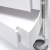 The modular construction kit for the trolley consists of 7 different plastic parts, which are joined by corner profiles made from aluminium. Depending on which pieces are selected and at which point in the construction process, anything from a simple set of shelves to a piece of furniture with doors and/or drawers can be created. The result is a variety of useful trolleys for the bathroom, office, kitchen and other living and working areas. The high-quality, glossy ABS surface gives the furniture a touch of elegance and a modern feel, while the reflections in the surfaces form a lively contrast to the mechanical use of shapes of this product.