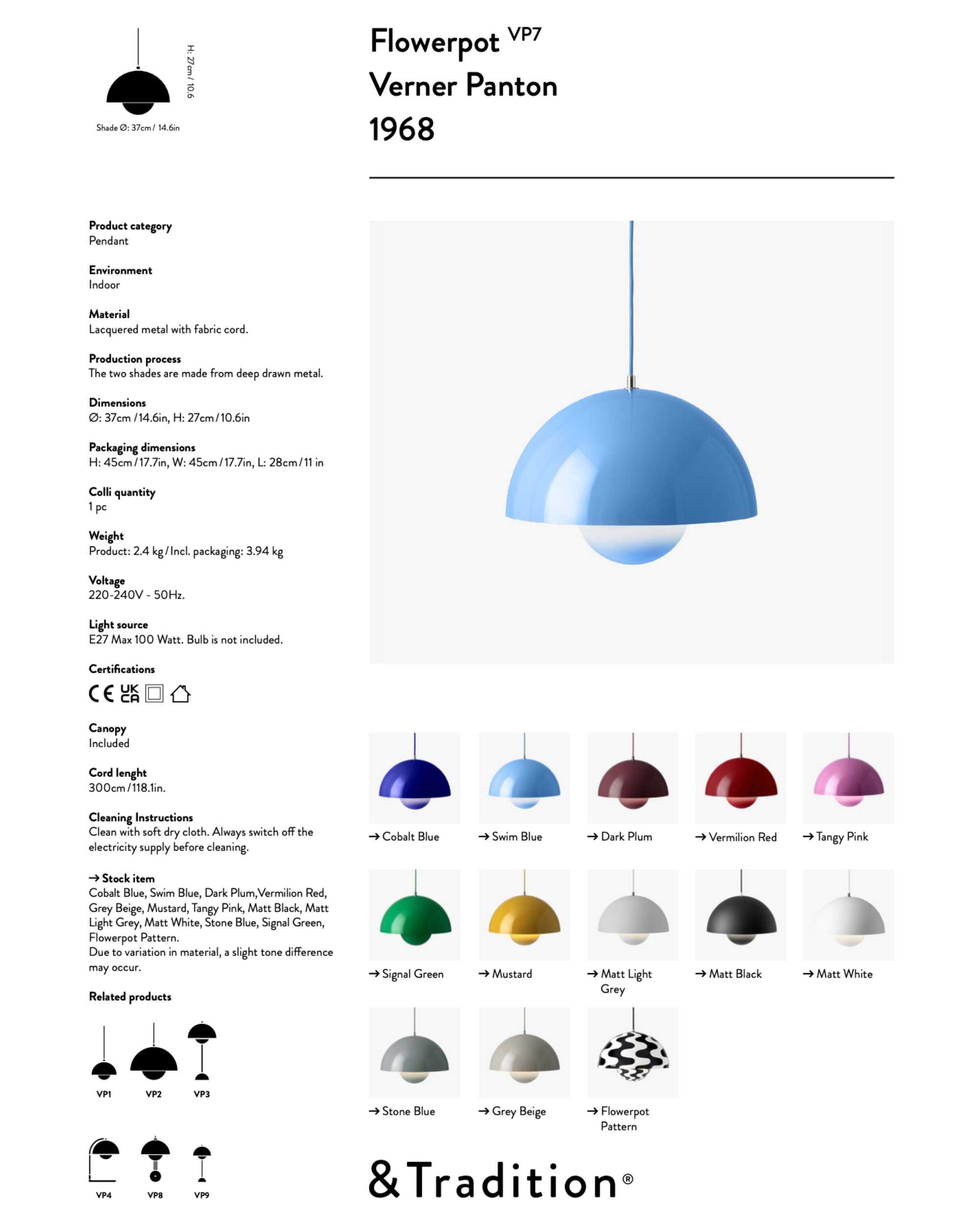 &Tradition’s Flowerpot VP7 pendant is a design classic from the late 1960s, created by Verner Panton. Thanks to its simplistic design, Flowerpot will easily find its place in any room of the house, for example above the dining table or in the living room.