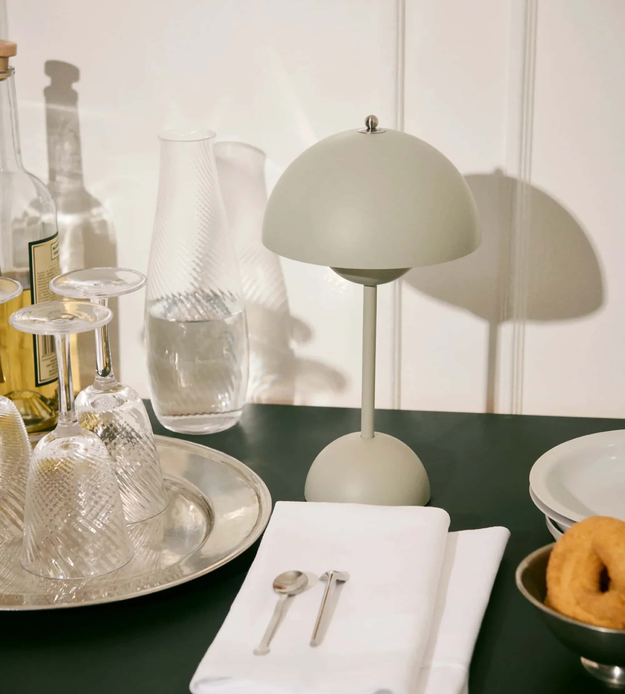 The Flowerpot, a vividly coloured lamp with a rounded pendant that hangs from the semi-domed upper shade, embodies the experimental attitude of Verner Panton. Slightly smaller in size than the table lamp version, and deliberately lightweight, the portable VP9 comes equipped with a USB charging cable. It is available in a wide range of contemporary colours and will bring a cozy atmosphere to indoor and outdoor settings.