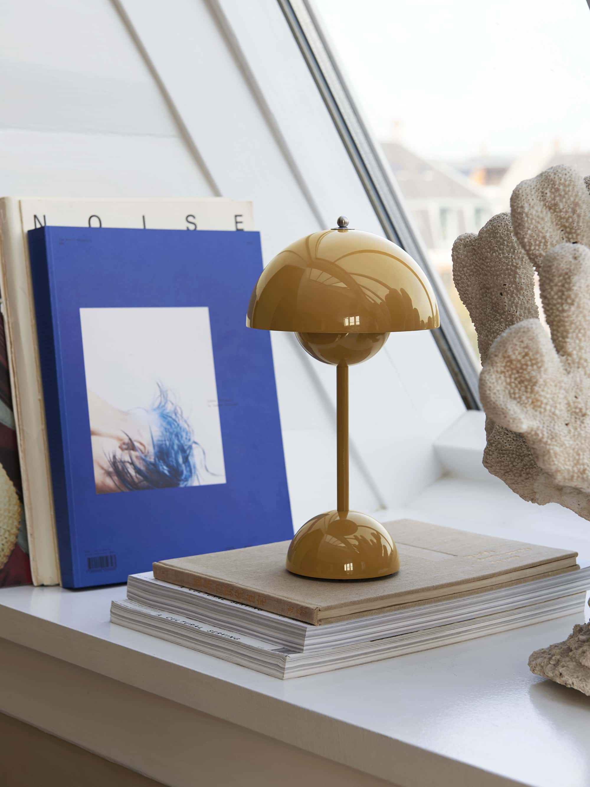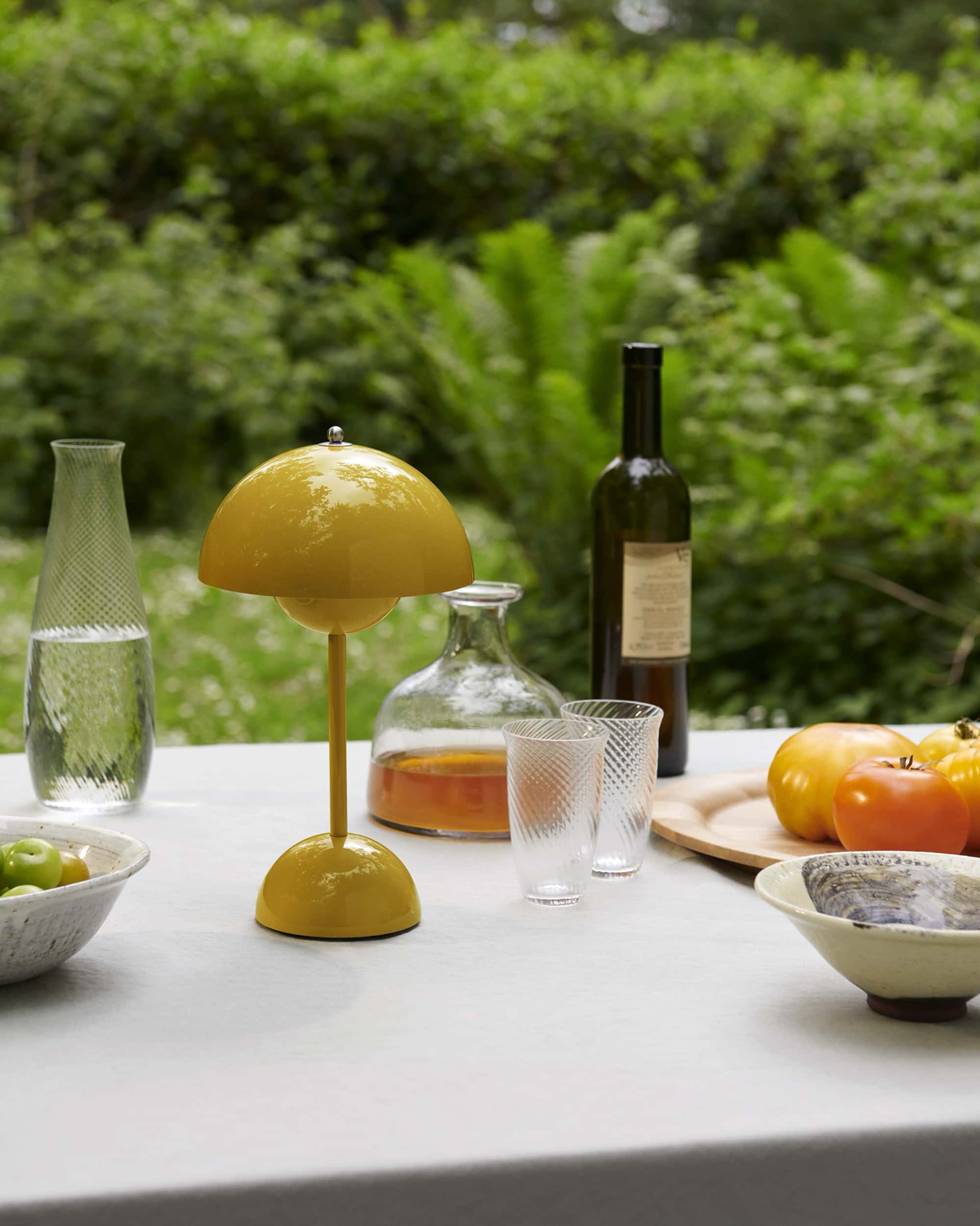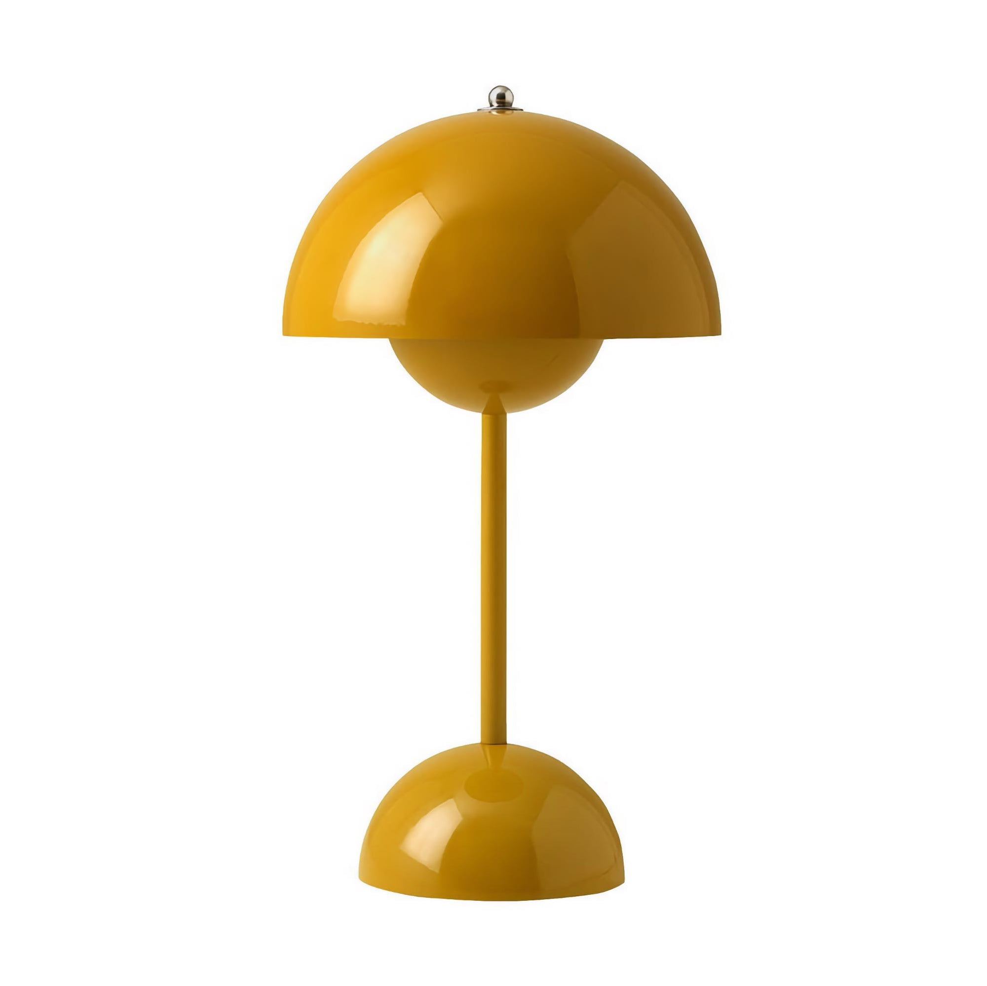 The Flowerpot, a vividly coloured lamp with a rounded pendant that hangs from the semi-domed upper shade, embodies the experimental attitude of Verner Panton. Slightly smaller in size than the table lamp version, and deliberately lightweight, the portable VP9 comes equipped with a USB charging cable. It is available in a wide range of contemporary colours and will bring a cozy atmosphere to indoor and outdoor settings.