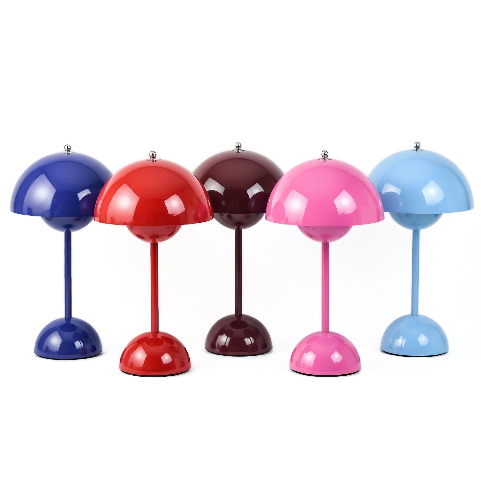 The Flowerpot, a vividly coloured lamp with a rounded pendant that hangs from the semi-domed upper shade, embodies the experimental attitude of Verner Panton. Slightly smaller in size than the table lamp version, and deliberately lightweight, the portable VP9 comes equipped with a USB charging cable. It is available in a wide range of contemporary colours and will bring a cozy atmosphere to indoor and outdoor settings.