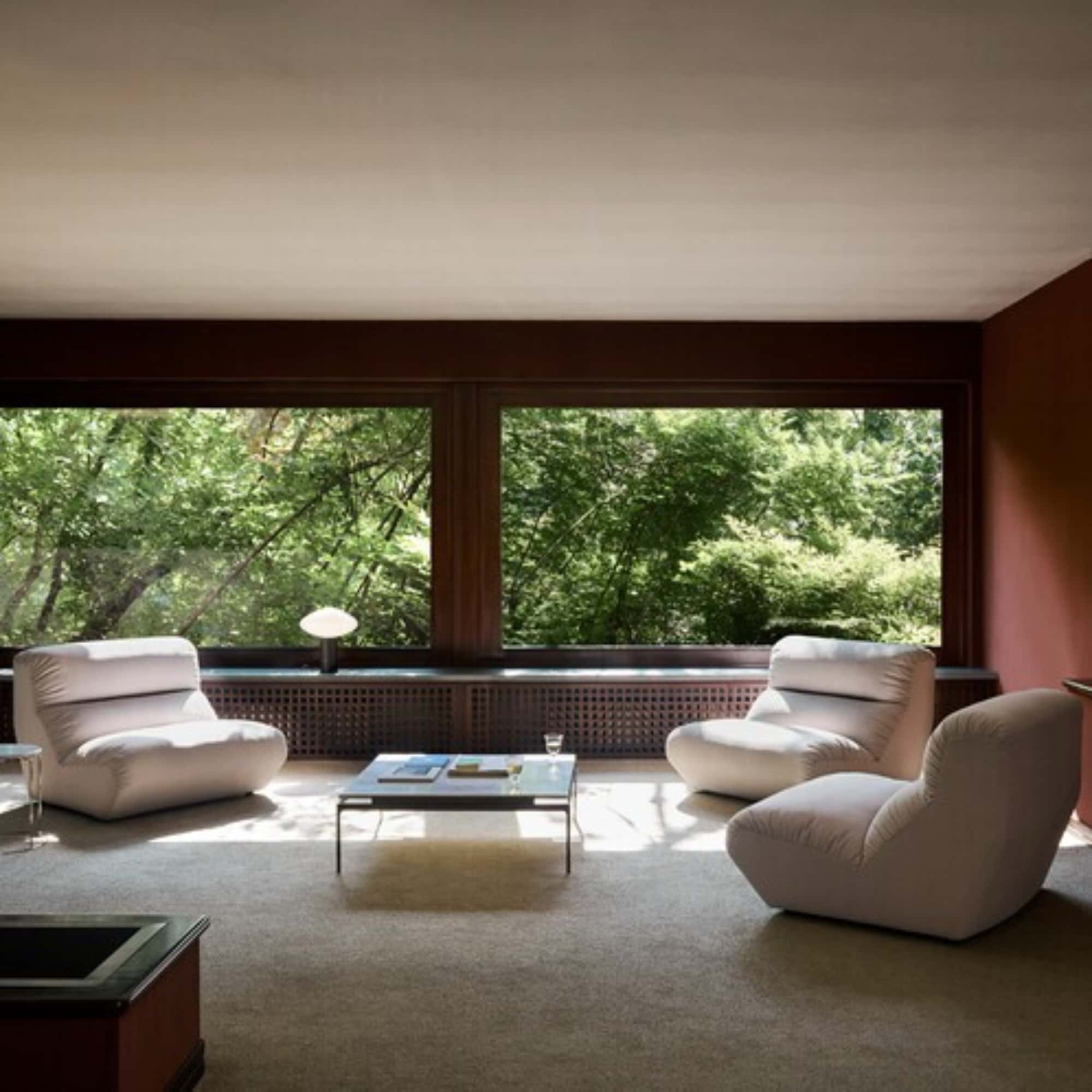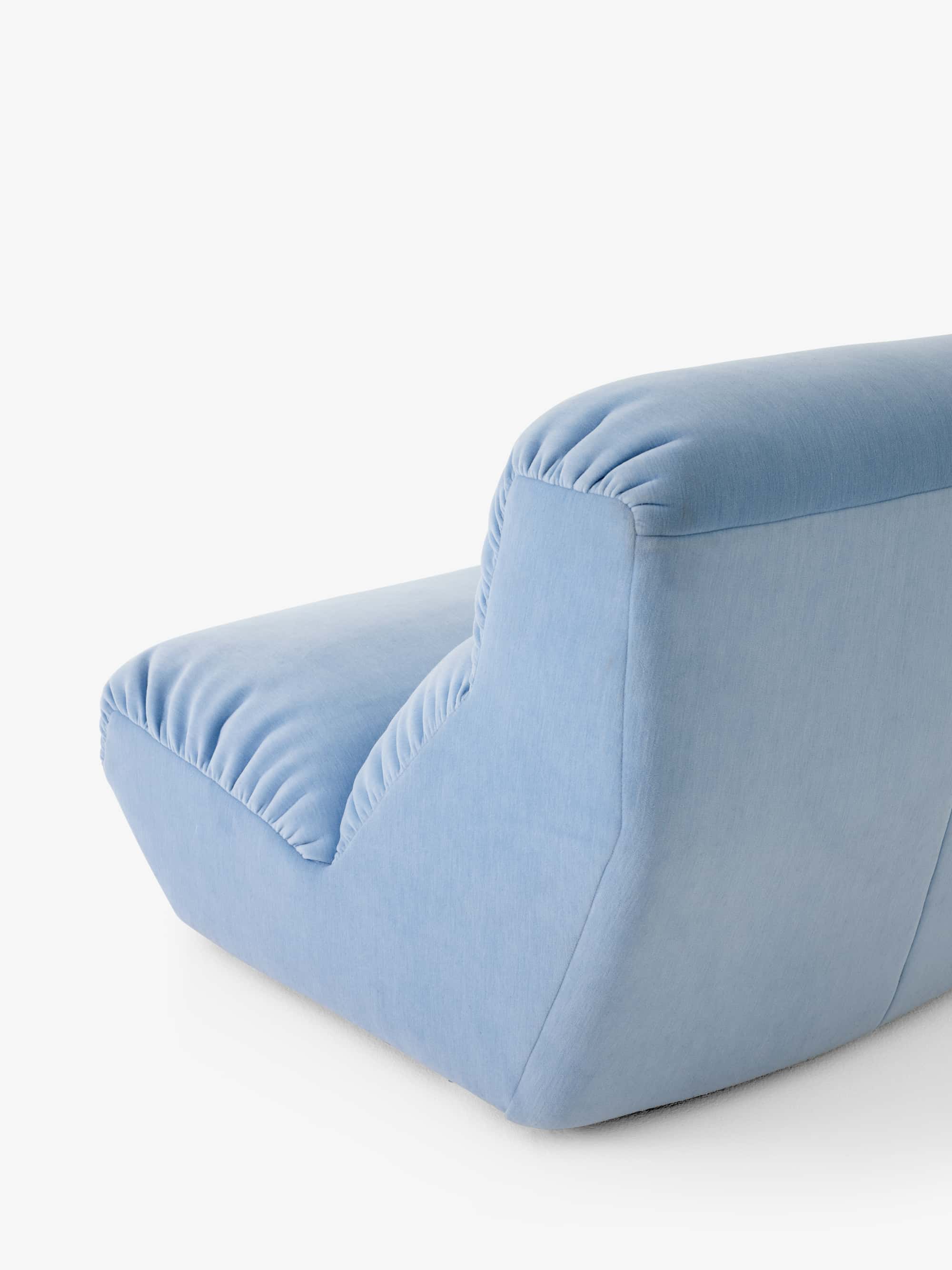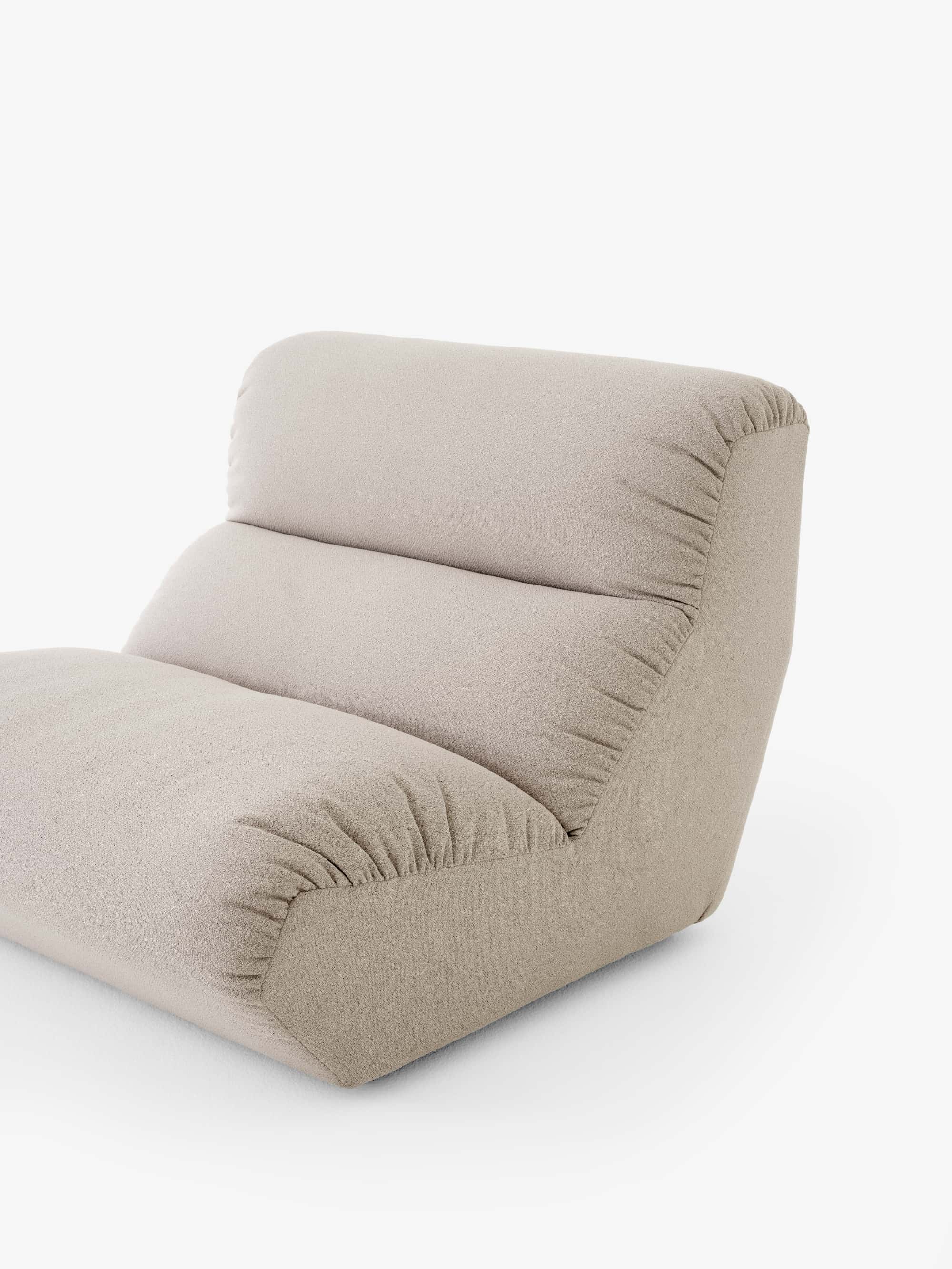 Reflecting a duality between high comfort and low form, the generous proportions and prioritisation of cushioning and figure-hugging upholstery in the Hi Lo modules make for a modular sofa that envelopes the user.