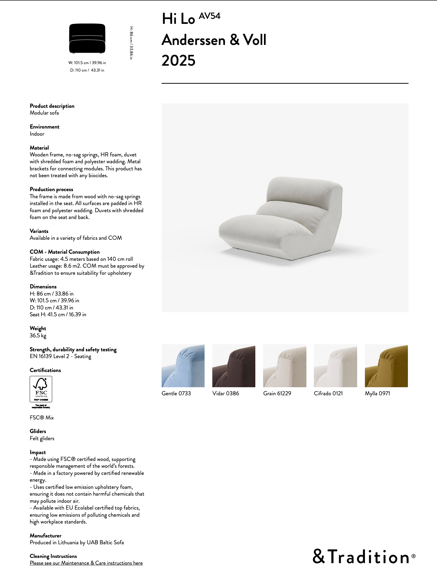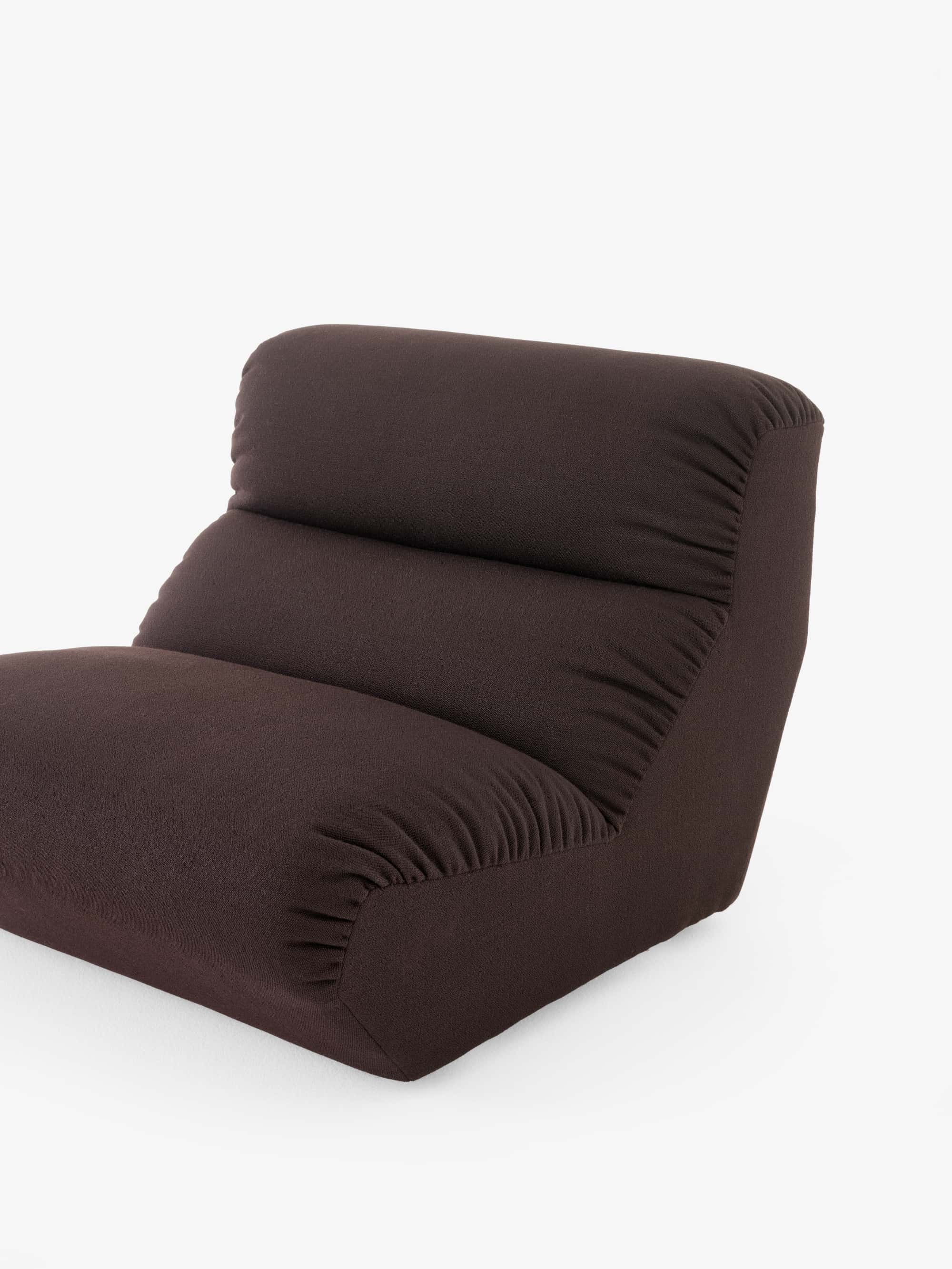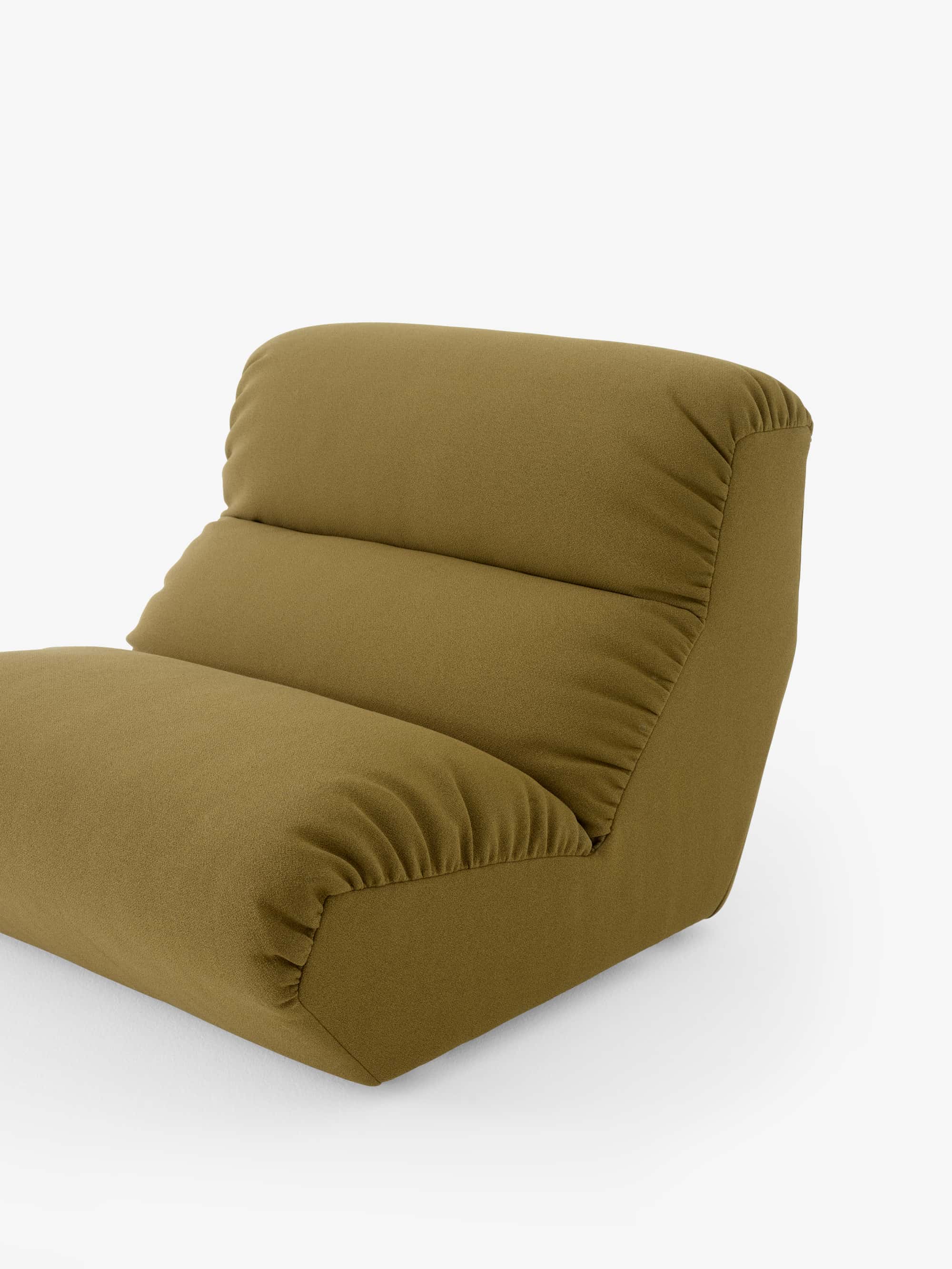 Reflecting a duality between high comfort and low form, the generous proportions and prioritisation of cushioning and figure-hugging upholstery in the Hi Lo modules make for a modular sofa that envelopes the user.