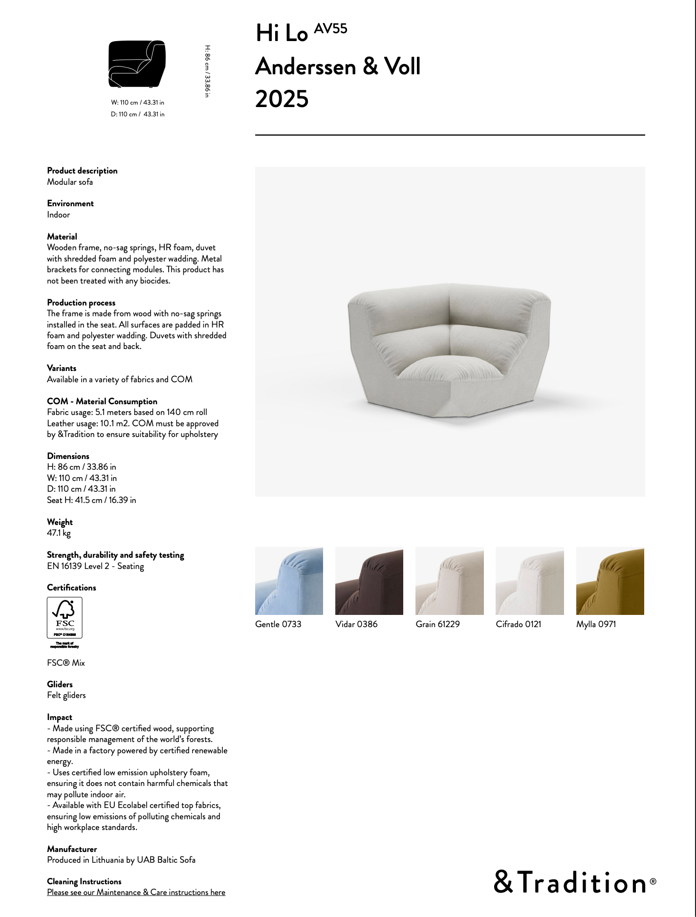 Reflecting a duality between high comfort and low form, the generous proportions and prioritisation of cushioning and figure-hugging upholstery in the Hi Lo modules make for a modular sofa that envelopes the user.