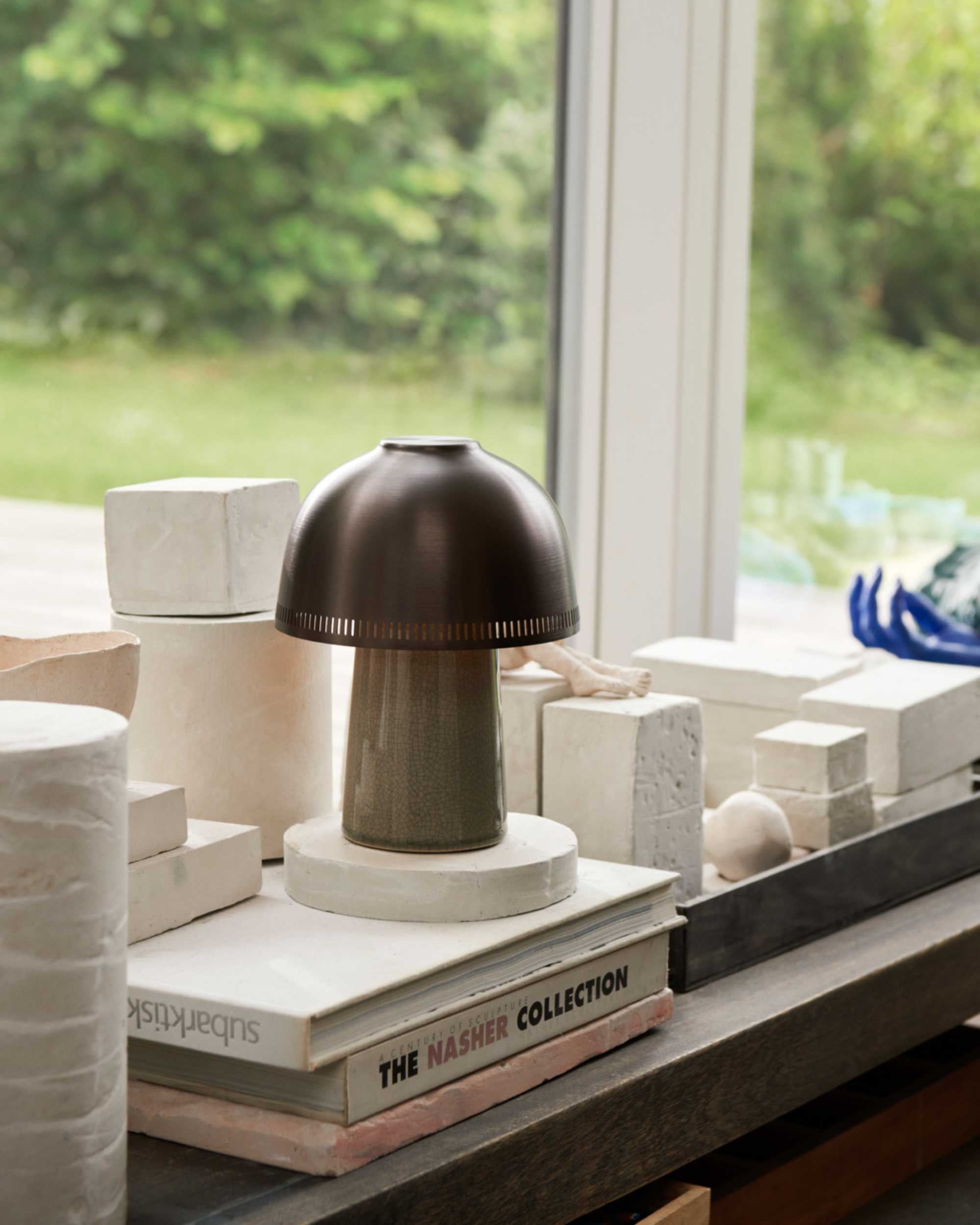 Named after the traditional Japanese pottery technique, Raku is a compact lamp with considerable presence. Drawing inspiration from the age-old art form, the lamp features a hand-sculpted ceramic base with a crackle glaze that varies slightly in each piece, serving as a reminder to enjoy the imperfections.