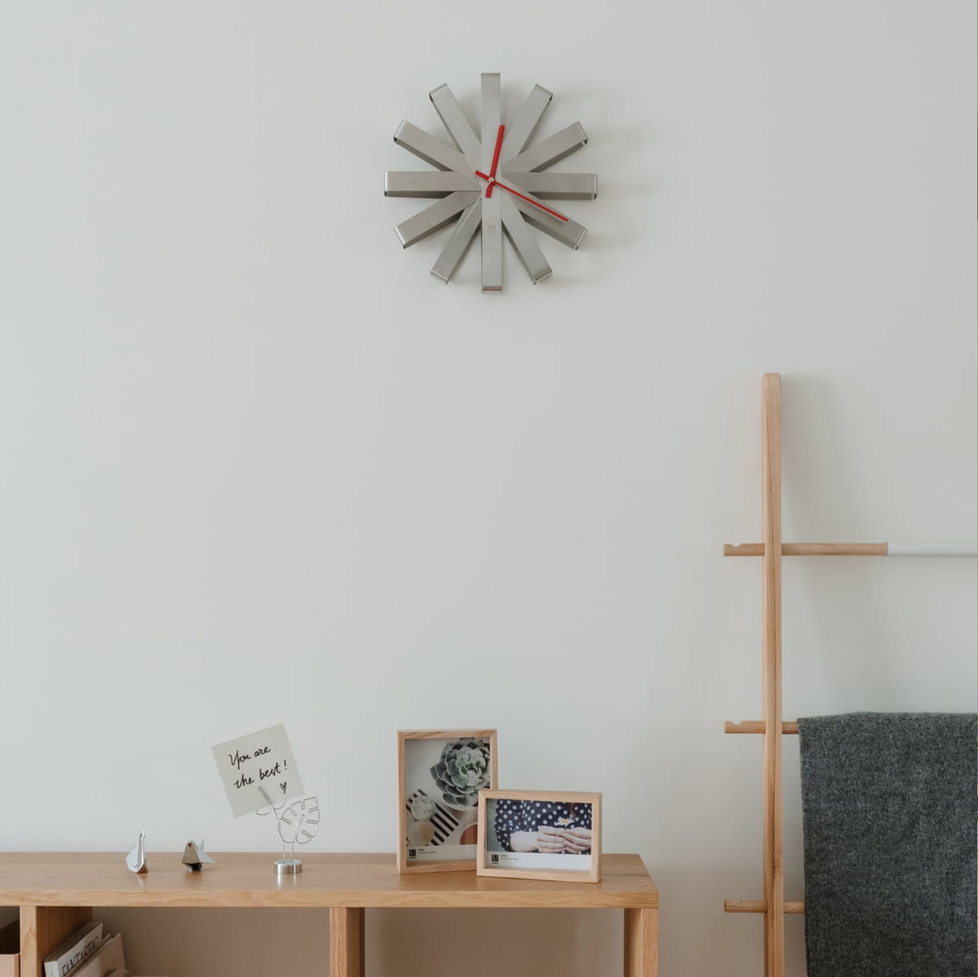 silent sweeping quartz movement. stunning wall clock designed by michelle ivankovic. made from beech wood which has been gently bent into folded ribbon shapes - each fold representing an hour on the clock.