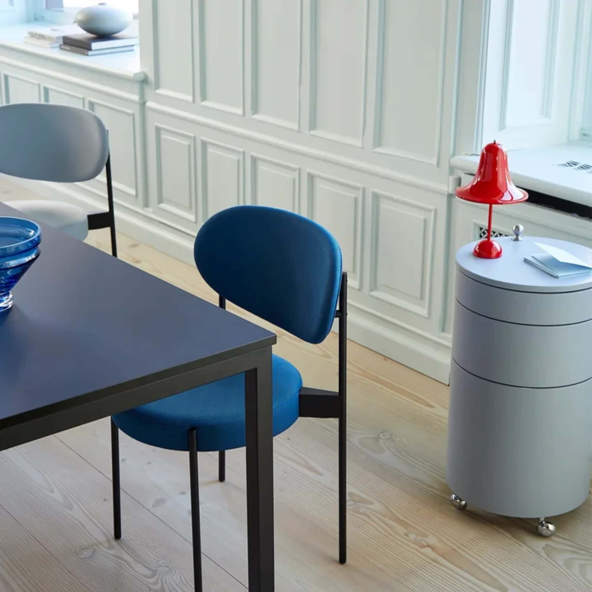 The Pantop Ø18 Portable Lamp is available in an array of colours – Cream White, Vivid Orange, Cherry Red, Pitch Brown, Night Blue, Dark Teal, Light Teal and Chrome.